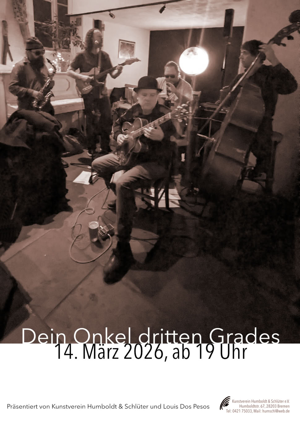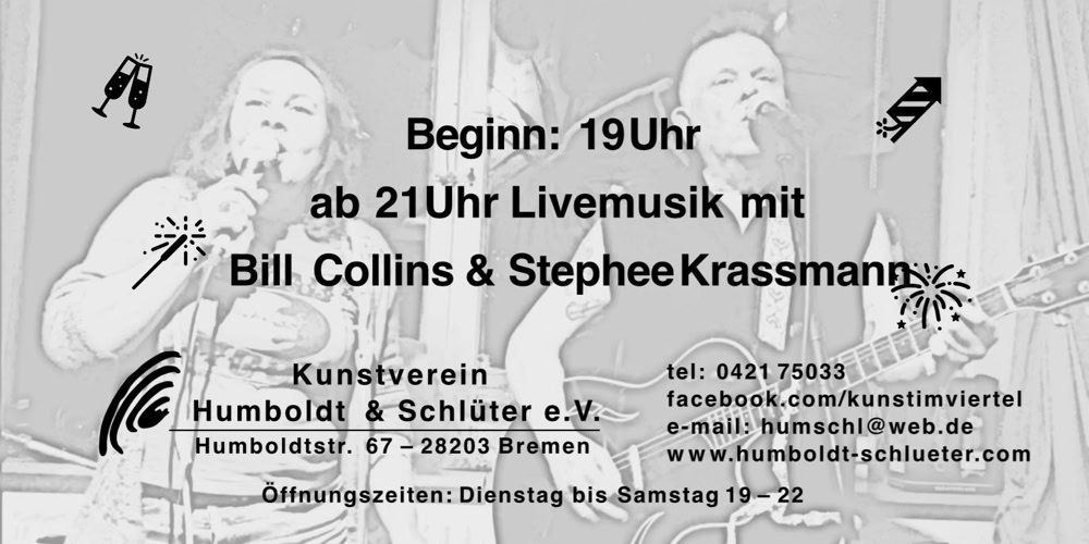 Zeitgenössische Kunst mit wechselnden Ausstellungen renommierter Bremer Künstler und Newcomern, auch Autodidakten. Die Werke können aus allen Richtungen der Kunst stammen. Schwerpunkt ist die aktuelle Malerei, verbunden mit Events und Performances zu den Vernissagen. Der Kunstverein Humboldt & Schlüter ist ein Forum der Kunst aus dem Untergrund und den Wurzeln der kreativen Freiheit. So sind auch kontroverse KünstlerInnen im Verein willkommen, ebenso Einsteiger, die ihre Arbeit endlich mal in der Öffentlichkeit präsentieren wollen. Im Hochparterre eines Alt Bremer Hauses treffen sich die Künstler und Gäste täglich. Bei Gespräch, Getränk und Musik herrscht eine (aus)gelassene Atmosphäre. Events und Ausstellungen finden turnusmäßig etwa alle sechs Wochen statt. Kunstverein Humboldt & Schlüter e.V..„Der einzige Kunstverein der Welt, der auch Nachts geöffnet hat!“