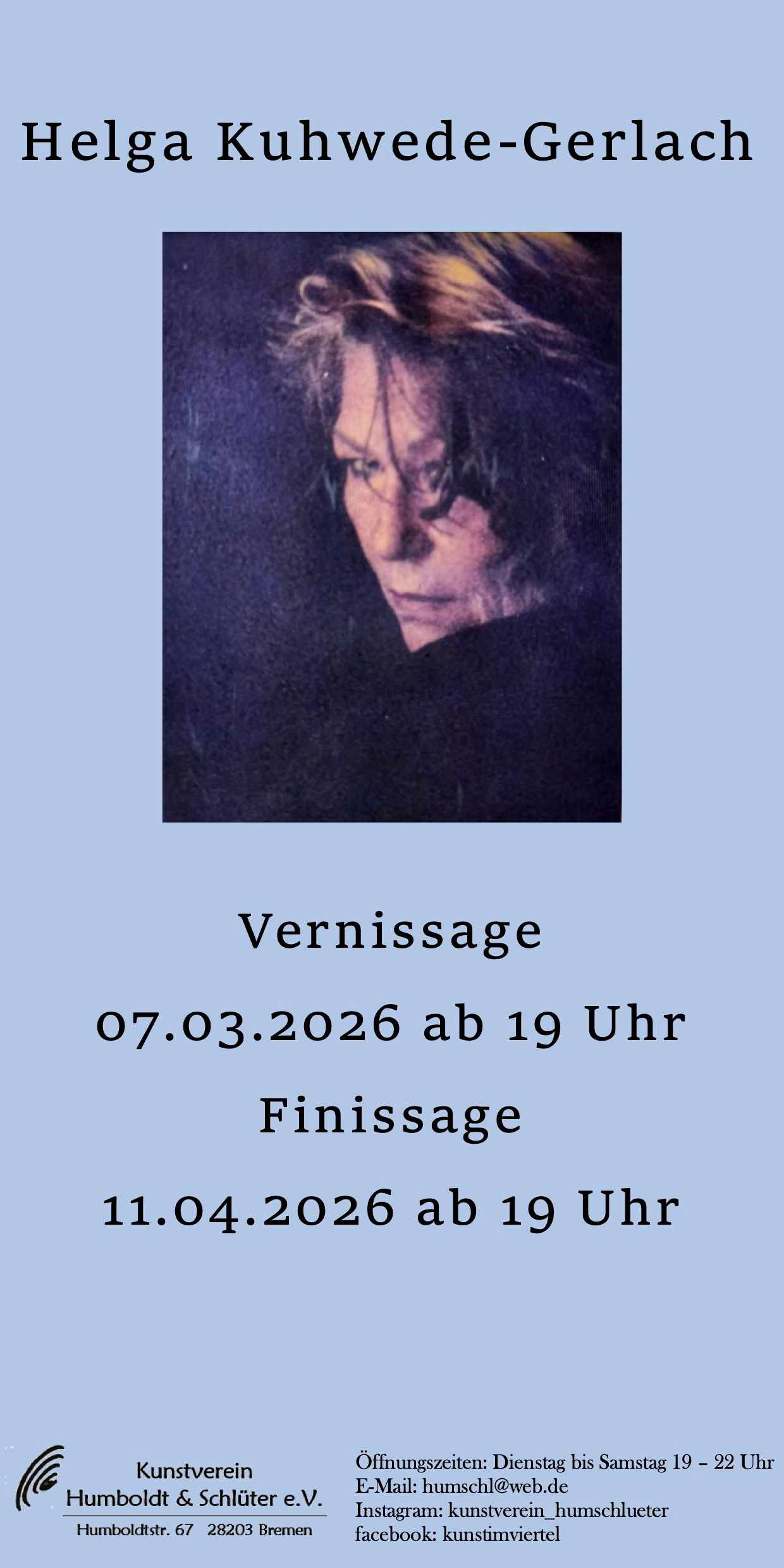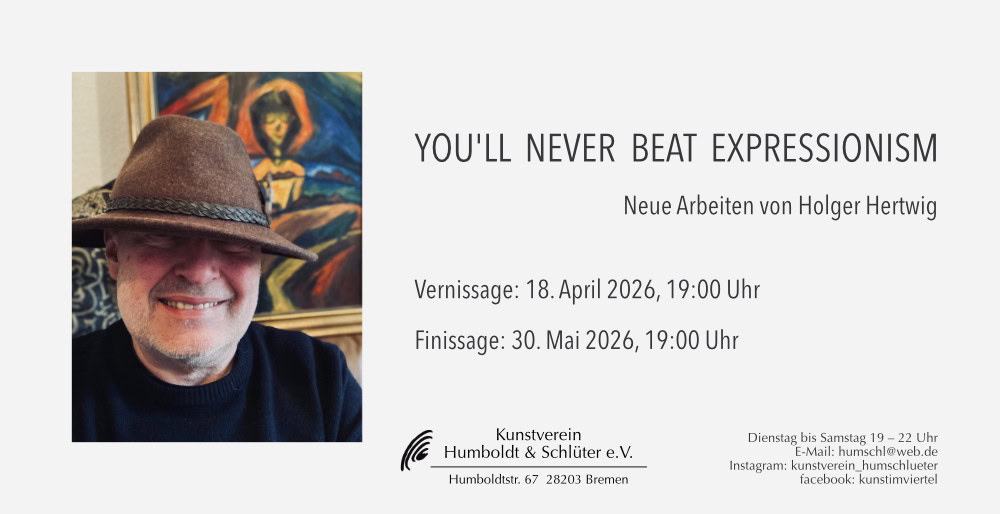 Zeitgenössische Kunst mit wechselnden Ausstellungen renommierter Bremer Künstler und Newcomern, auch Autodidakten. Die Werke können aus allen Richtungen der Kunst stammen. Schwerpunkt ist die aktuelle Malerei, verbunden mit Events und Performances zu den Vernissagen. Der Kunstverein Humboldt & Schlüter ist ein Forum der Kunst aus dem Untergrund und den Wurzeln der kreativen Freiheit. So sind auch kontroverse KünstlerInnen im Verein willkommen, ebenso Einsteiger, die ihre Arbeit endlich mal in der Öffentlichkeit präsentieren wollen. Im Hochparterre eines Alt Bremer Hauses treffen sich die Künstler und Gäste täglich. Bei Gespräch, Getränk und Musik herrscht eine (aus)gelassene Atmosphäre. Events und Ausstellungen finden turnusmäßig etwa alle sechs Wochen statt. Kunstverein Humboldt & Schlüter e.V..„Der einzige Kunstverein der Welt, der auch Nachts geöffnet hat!“